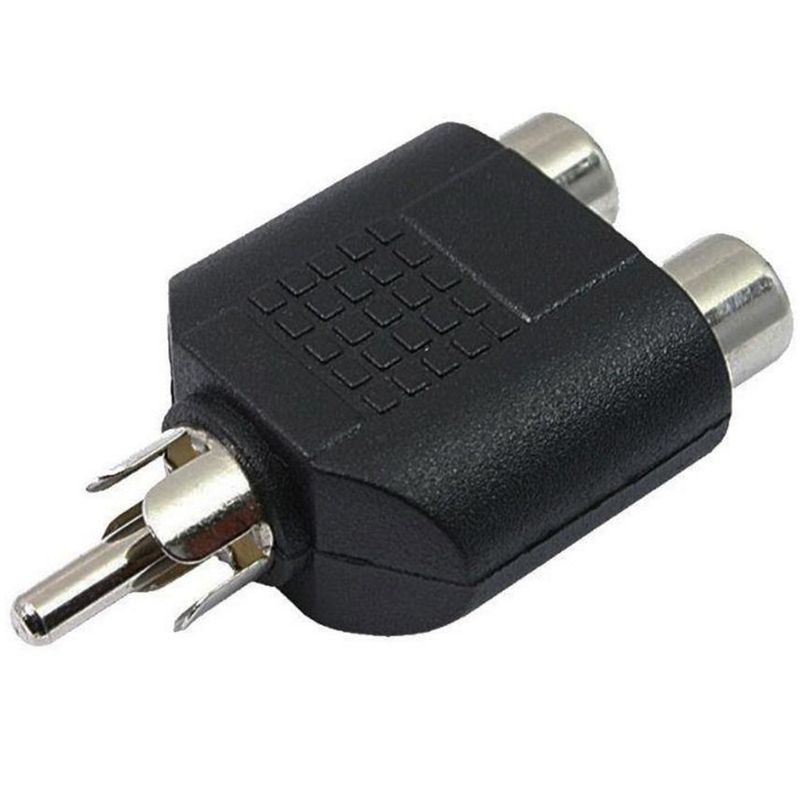 Adaptador de áudio RCA (Macho) > 2x RCA (Fêmea), permite conectar um dispositivo / equipamento com conexão RCA a dois dispositivos / equipamentos com conexão RCA.