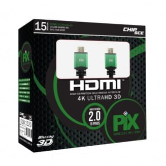 InformáticaCabos e AdaptadoresVídeoCabo de Vídeo - HDMI 2.0 - 15m - Chip SCE PIX - Preto - 018-1520 - 7343