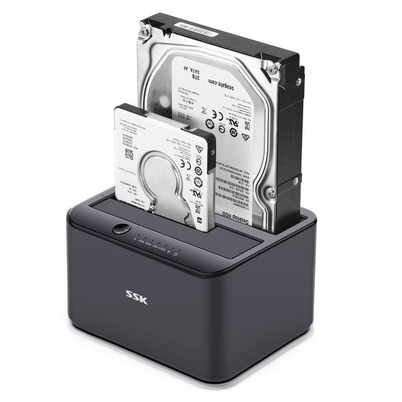 HardwareArmazenamento HDDoca USB - 2.5 / 3.5 pol - SSK DK103 PRO (Duas baias, 2x HD 16TB, clone, 5Gbps)