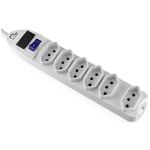 Filtro de linha com 6 tomadas para equipamentos, modelo bivolt (115V / 220V), conectores de 3 pinos (norma ABNT NBR 14.136).