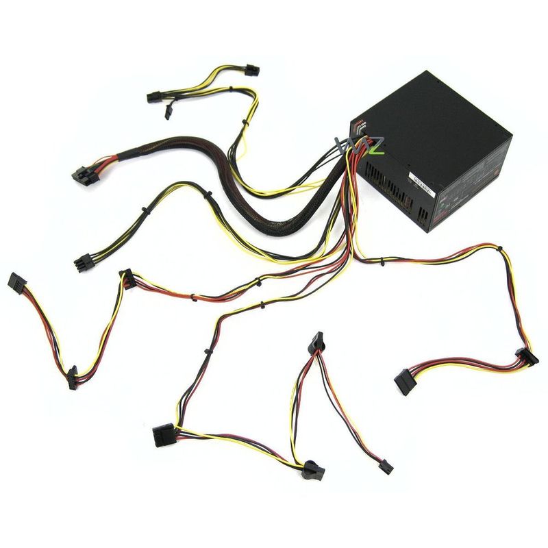 Fonte de alimentação com potência total de 450W, suporta o padrão ATX12V v2.2, tensão de entrada com seleção manual (115 ~ 230V), ventoinha de 8cm com controle automático de velocidade, duas linhas de +12V, conexões ATX20/24, ATX12V (4+4 pinos), PCI Express (6 pinos), PCI Express (6+2 pinos) e 5x SATA, cabo ATX com malha de proteção.
