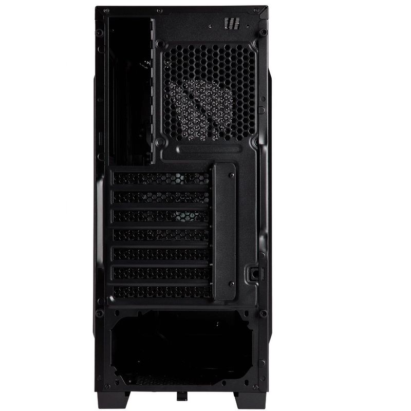 Gabinete Torre ATX, 3 baias de 3,5pol + 2 baias de 2,5pol (internas), até 5 ventoinhas de 12cm, conexões na lateral (1x USB v2.0, 1x USB v3.0 e Áudio), suporta placa mãe ATX / Micro ATX / Mini ITX, 7 slots de expansão, lateral esquerda com janela em acrílico.