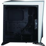 Gabinete Torre ATX, 2 baias de 3,5pol + 2 baias de 2,5pol (internas), até 6 ventoinhas de 12cm, conexões no frontal (2x USB v3.0 e Áudio), suporta placa mãe Mini ITX / Micro ATX / ATX, 7 slots de expansão, lateral esquerda com janela de vidro temperado.