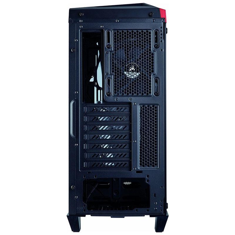 Gabinete Torre ATX, 2 baias de 3,5pol + 2 baias de 2,5pol (internas), até 6 ventoinhas de 12cm, conexões no frontal (2x USB v3.0 e Áudio), suporta placa mãe Mini ITX / Micro ATX / ATX, 7 slots de expansão, lateral esquerda com janela de vidro temperado.