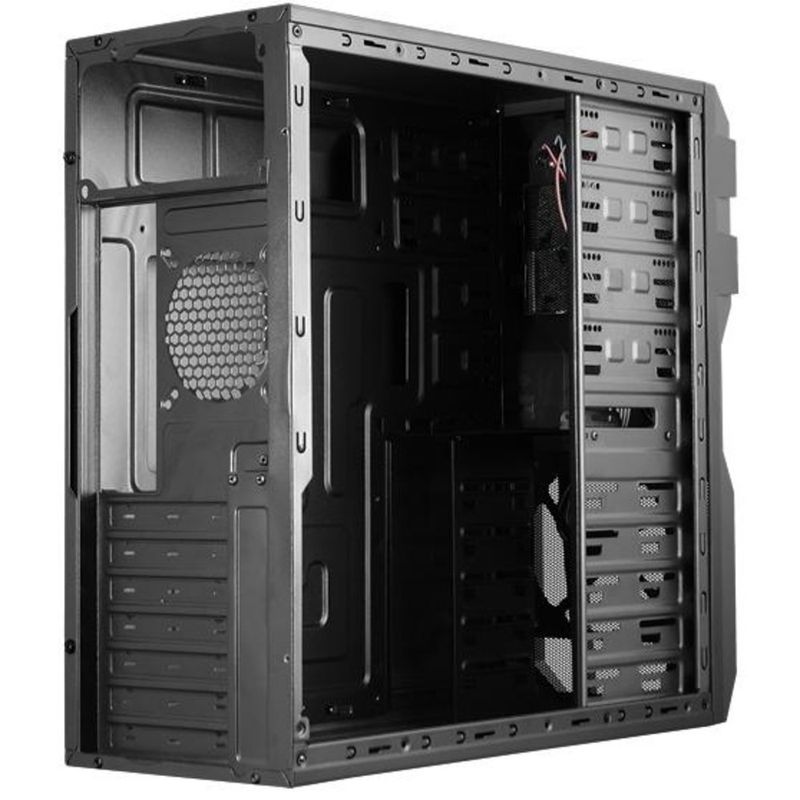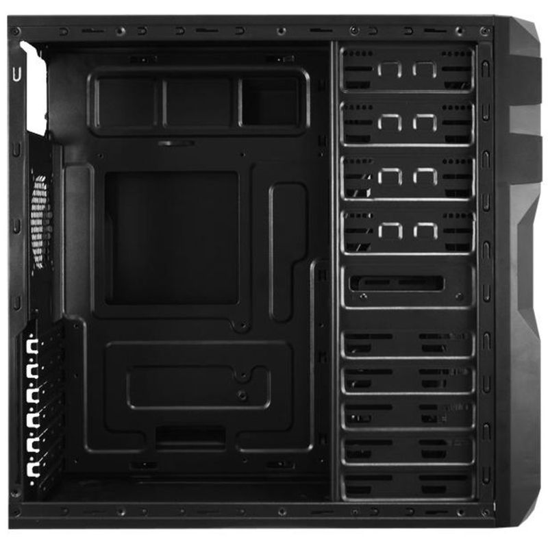 Gabinete Torre ATX, 2 baias de 5,25pol (externas) + 6 baias de 3,5pol + 1 baia de 2,5pol (internas), até 4 ventoinhas de 8, 9 ou 12cm, conexões no frontal (1x USB v2.0, 1x USB v3.0 e Áudio), suporta placa mãe ATX / Micro ATX, 7 slots de expansão.