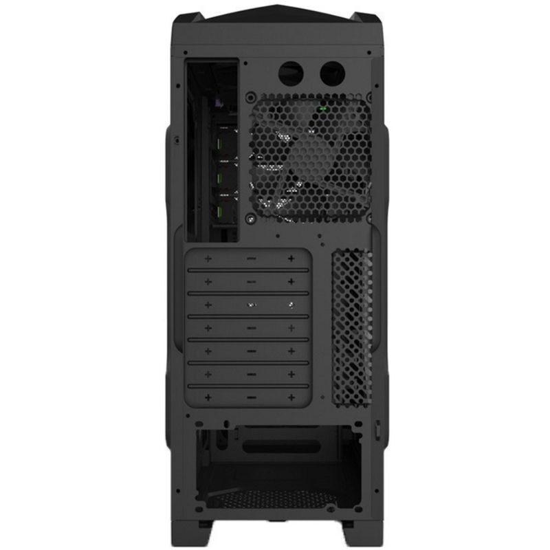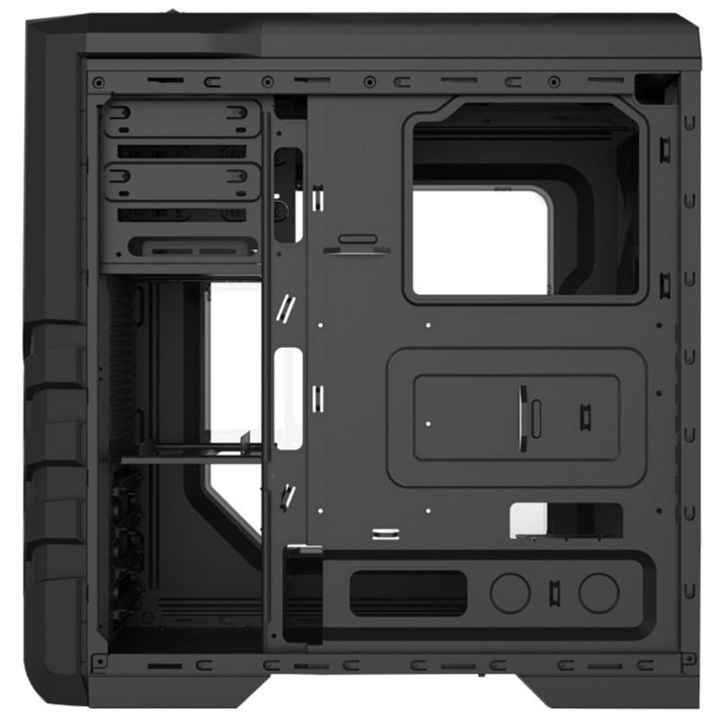 Gabinete Torre ATX, 1 baia de 5,25pol (externa) + 2 baias de 3,5pol + 2 baias de 2,5pol (internas), até 6 ventoinhas de 12cm, conexões no teto (2x USB v3.0 e Áudio) + controlador de ventoinha, suporta placa mãe ATX / Micro ATX / Mini ITX, 7 slots de expansão, lateral esquerda com janela em acrílico.