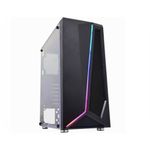 Gabinete tipo torre, suporta Placa-Mãe ATX/micro ATX/mini ITX, baias 2x 3.5pol / 3x 2.5pol, 7x slots, janela lateral em acrílico, iluminação LED.