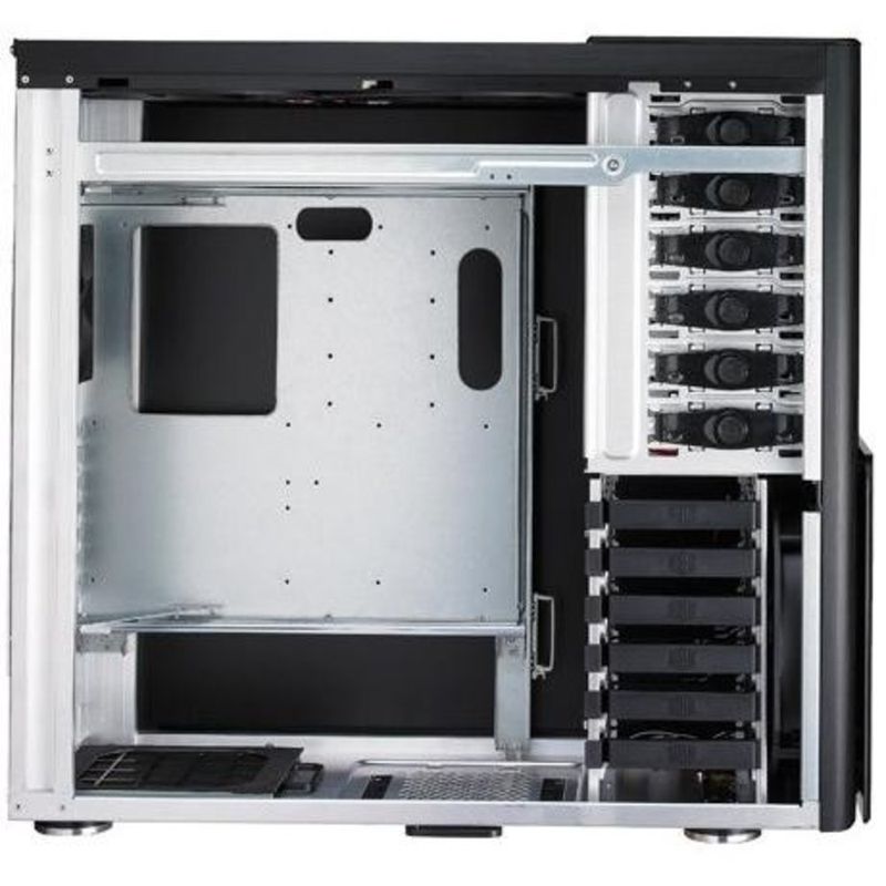 Gabinete Super Torre ATX, 6 baias de 5,25pol + 1 baia de 3,5pol (externas) + 6 baias de 3,5pol (internas), até 7 ventoinhas de 12cm e 23cm, conexões no teto (4x USB v2.0, e-SATA, Firewire e Áudio), suporta placa mãe E-ATX / ATX / Micro ATX, 7 slots de expansão.