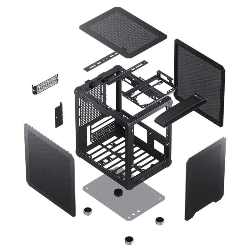 Gabinete Mini ITX / Mini DTX, 2x 2,5pol / 1x 3,5pol, 1x USB v3.2 + 1x USB-C v3.2 + Áudio, 4 slots, c/ alça para transporte.