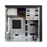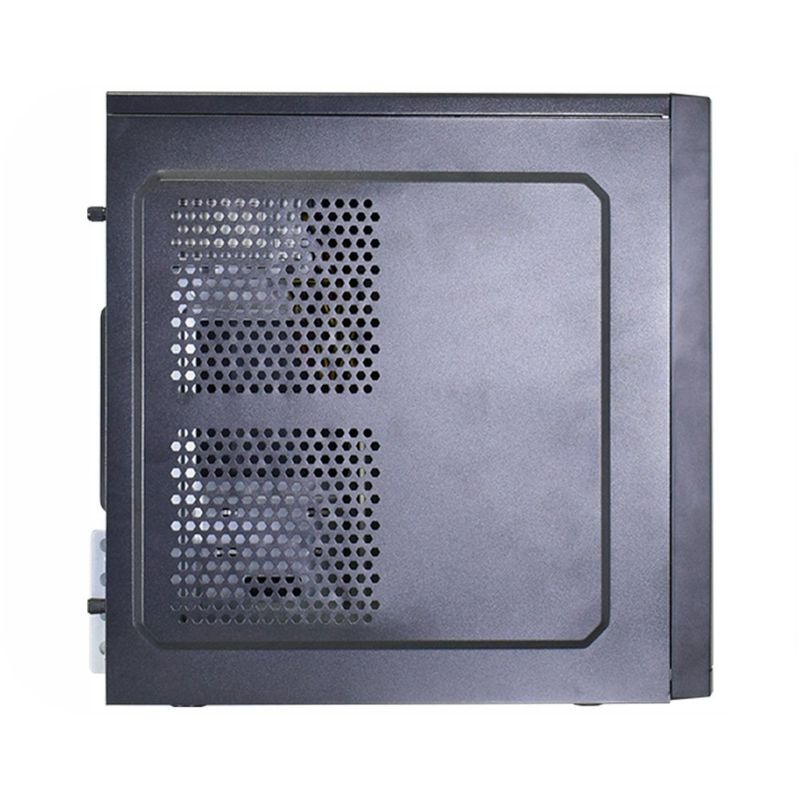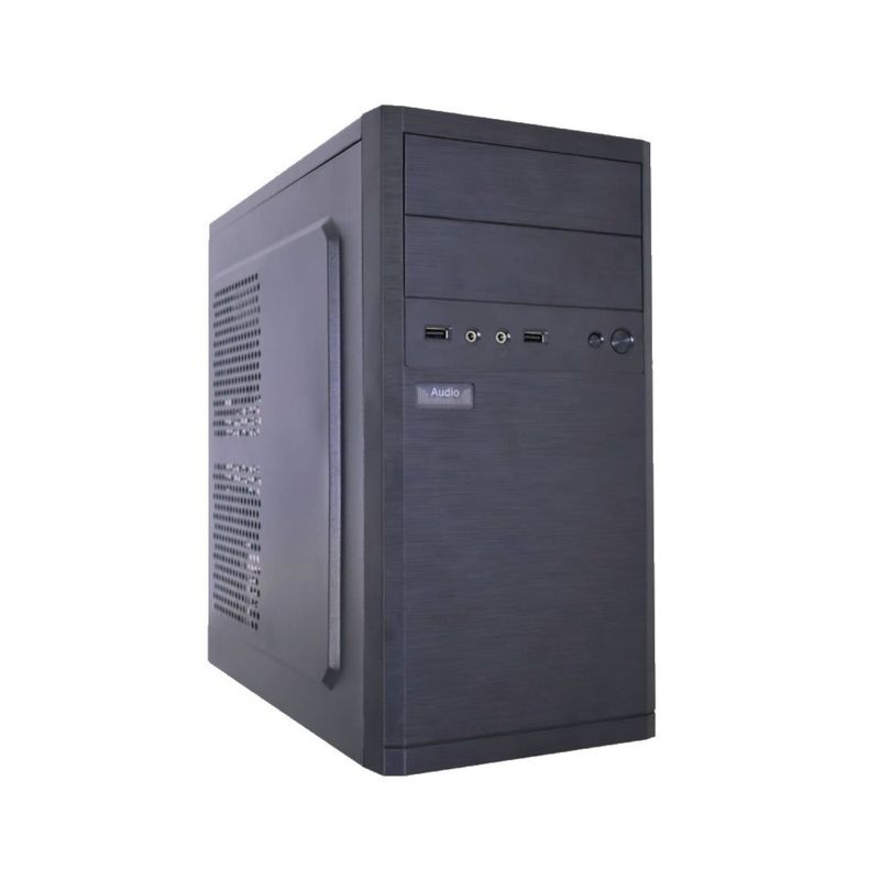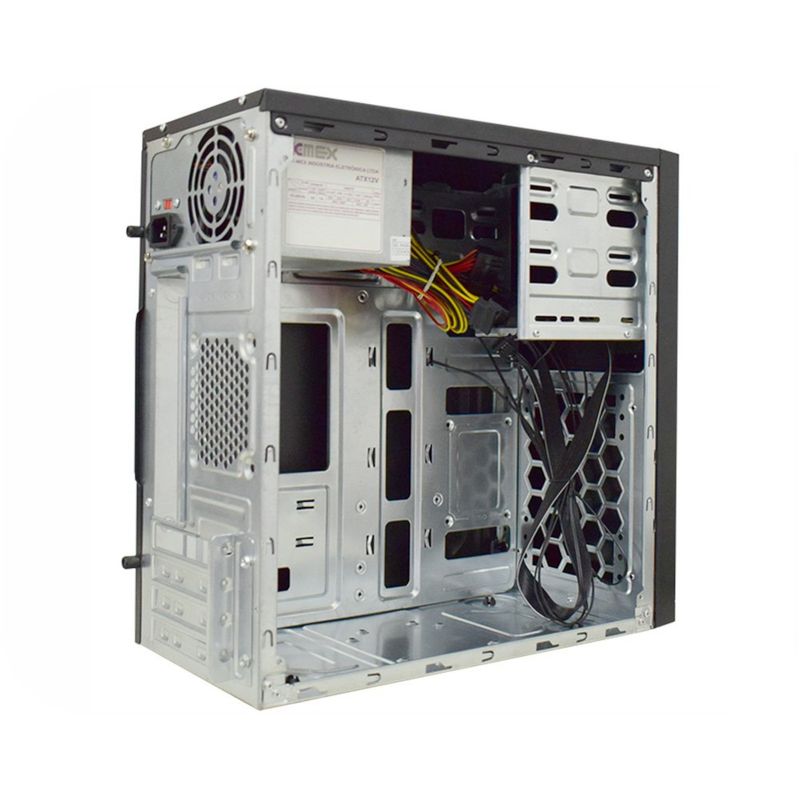 Gabinete tipo desktop, suporta placa-mãe micro ATX, 2x baias (externas) de 5.25pol, 2x baias (internas) de 3.5pol, 1x baia de 2.5pol, suporta até 4x ventoinhas, portas USB v2.0 Tipo-A, conectores de áudio P2 de 3.5mm, 4x slots de expansão, fonte padrão ATX, cor predominante preto.