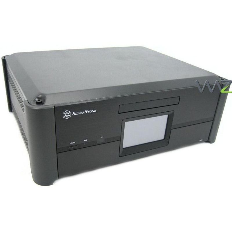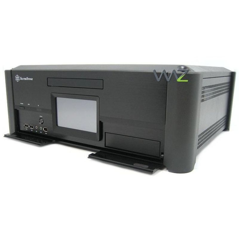 Gabinete Desktop HTPC Micro ATX, 1 baia de 5,25pol + 1 de 3,5pol (externas), 2 baias de 3,5pol (internas), duas ventoinhas de 8cm (inclusas), conectores no frontal (USB, Firewire, Áudio), suporta placa mãe Micro ATX / DTX / Mini ITX, display LCD Touchscreen de 4,3pol, controle remoto sem fio incluso.