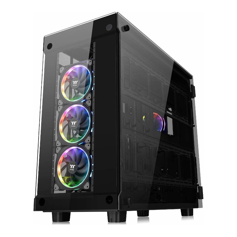 Gabinete tipo desktop (Super Tower), suporta Placa-Mãe XL-ATX / E-ATX / ATX / micro ATX / mini ITX, 12x Baias de 3.5pol/2.5pol (internas), portas USB v3.0 Tipo-A, porta USB v3.0 Tipo-C, conexões de áudio P2 de 3.5mm, 12x slots de expansão, suporta até 20x ventoinhas, suporta fonte janelas laterais e frontal em vidro temperado, iluminação LED RGB.
