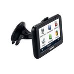 GPS p/ veículo, antena interna, display LCD de 4,3pol colorido e sensível ao toque, carregador veicular e suporte com ventosa inclusos, interface USB v2.0, leitor de cartão integrado (microSD), alto falante integrado.