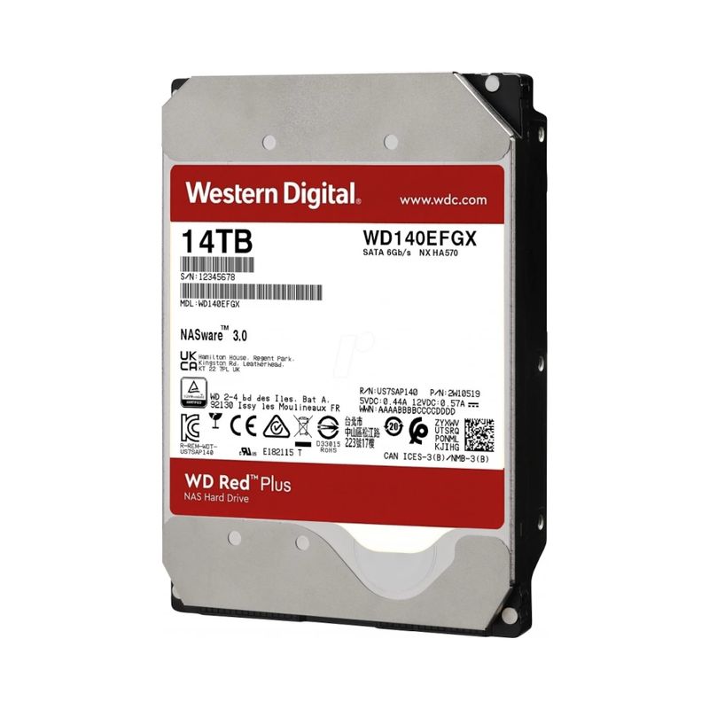 HD 14TB SATA3 Western Digital Red Plus WD140EFGX (3,5pol, 6Gb/s, 7.200 RPM, 512MB Cache, CMR)