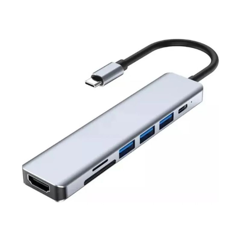 Hub USB-C - 7 portas - 2 USB + Tipo C + PD + HDMI + Leitor de cartão SD/TF - MD9 - 9618