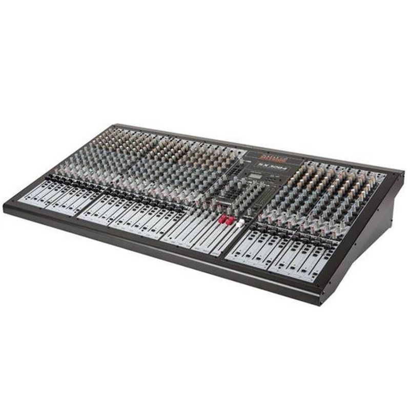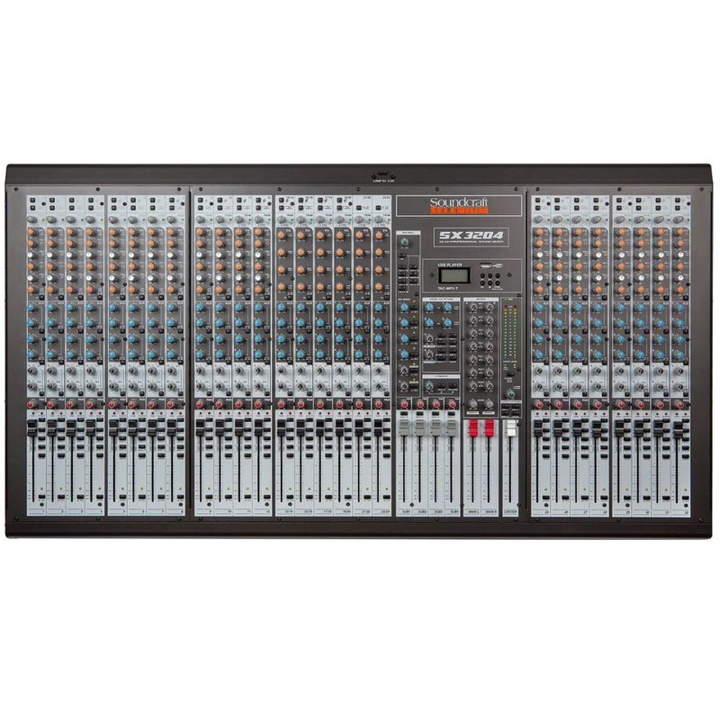 Mixer de áudio estéreo, 32 canais, múltiplas conexões: 16x XLR (p/ microfone) + 4x P10 (6,35mm - p/ entrada de áudio) + 2x XLR (p/ entrada de áudio) + 2x XLR (p/ saída de áudio) + 2x RCA (p/ gravação) + USB (p/ player de mídia) + 2x P10 (p/ 6,35mm - saída de áudio auxiliar) + 2x P10 (6,35mm - p/ entrada de áudio auxiliar), controles de volume independentes, permite combinar fontes de som, de forma a somá-las em um único sinal de saída.