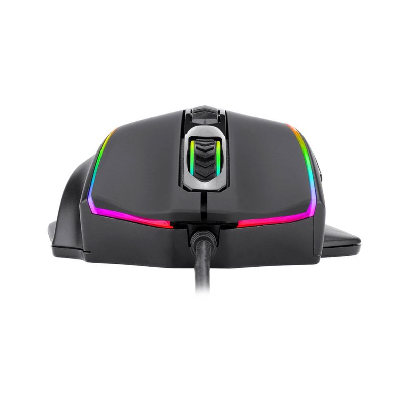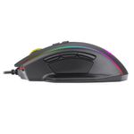 Mouse Gamer, interface USB Tipo-A, ergonomia para destros, sensor óptico Pixart PMW3325, até 10.000 DPI ajustáveis, 8x botões programáveis, ajuste de peso, armazenamento de perfis, iluminação LED RGB.