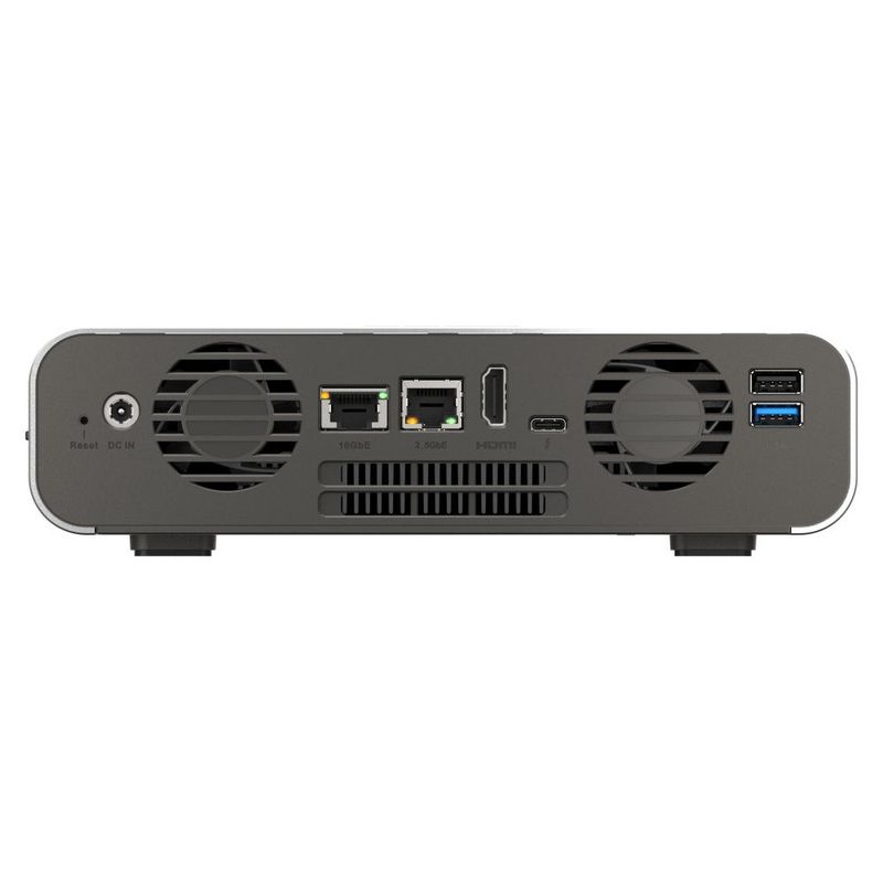 NAS, 5x baias E1.S (PCIe Gen3 x2), Intel Core i5-1340PE, Intel Iris Xe, 16GB DDR4, 1x 10GBASE-T + 1x 2.5GbE, HDMI, USB 2.0/3.2, Thunderbolt, fonte externa 120W (bivolt).