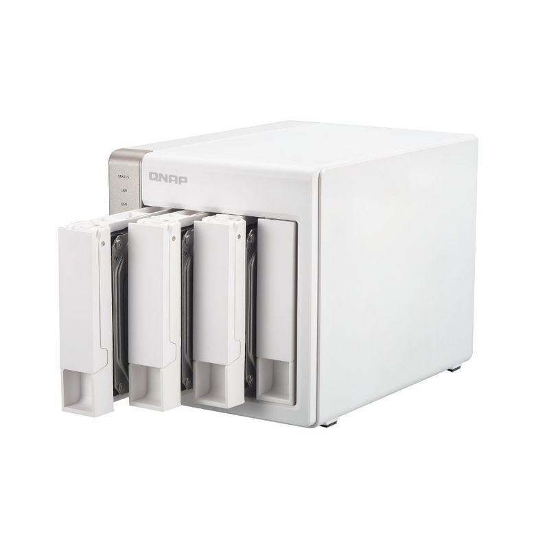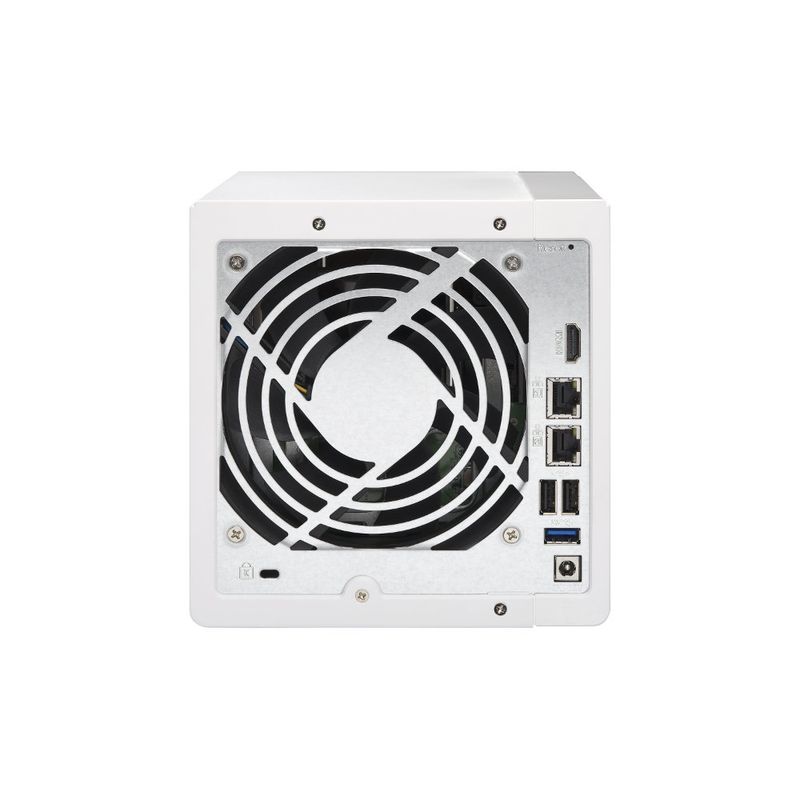 Estação de discos dedicada a armazenamento de arquivos em rede,(sem discos) suporte para até 4 discos SATA II/III,padrão 2.5pol/3.5pol,processador Intel® Celeron 2.41GHz dual-core (@ 2.58GHz),memória interna 1GB DDR3L RAM,memória flash 512MB,HDMI,USB v2.0, USB v3.0,rede Ethernet Gigabit (10/100/1000),RAID,refrigeração ativa.