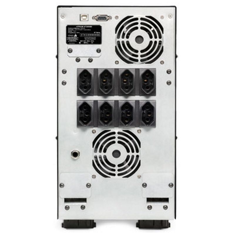 Nobreak de 3.000VA (3.000W), entrada bivolt (seleção automática) e saída em 115V, 8 tomadas para equipamentos, microprocessado, função TRUE RMS, conexão para o computador (Serial e USB), estabilizador e filtro de linha integrados, conectores de 3 pinos (norma ABNT NBR 14.136).