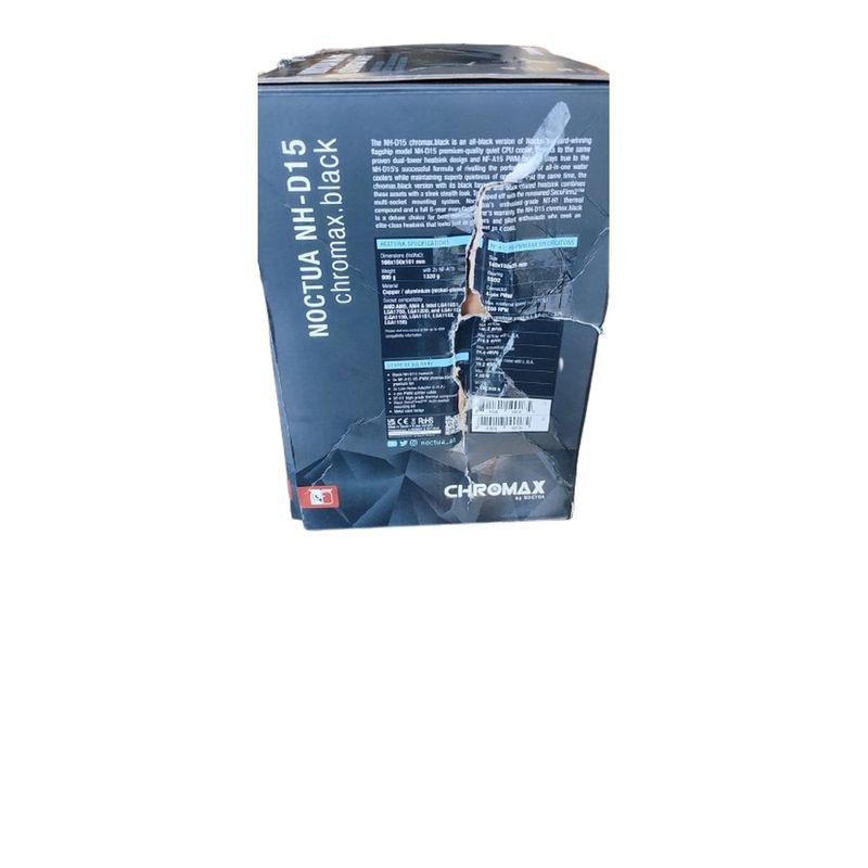 <span class='obs_openbox' style='text-align:center'>Produto novo, sem uso, caixa original amassada. Algumas aletas internas amassadas conforme fotos. Garantia de 12 meses. Acessórios lacrados.</span> Produto novo, sem uso, caixa original amassada. Aletas internas levemente amassadas conforme fotos. Garantia de 12 meses. Acessórios lacrados.Cooler para processador (AMD / Intel), dissipador com base e heatpipes em cobre, aletas em alumínio, pasta térmica Noctua NT-H1 e duas ventoinhas Noctua NF-A15 HS-PWM chromax.black (14cm - 4 pinos PWM) inclusas.
