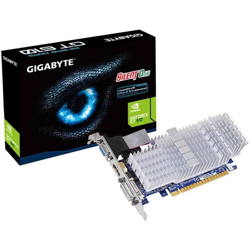 HardwarePlaca de Vídeo (VGA)Placa de vídeo - NVIDIA GeForce GT 610 (2GB / PCI-E) - Gigabyte Silent - GV-N610SL-2GL