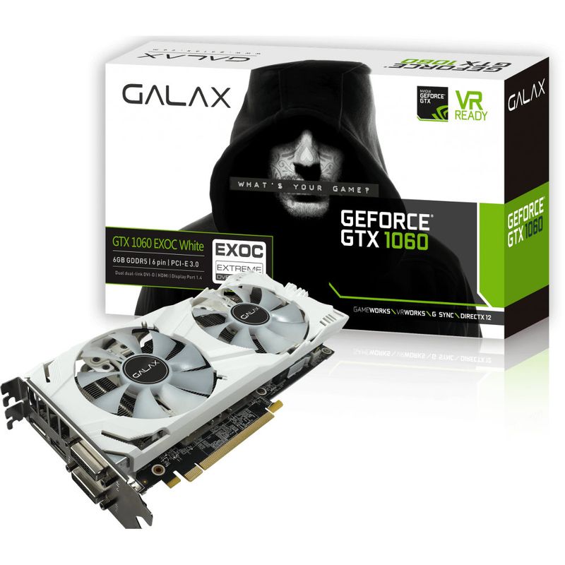 HardwarePlaca de Vídeo (VGA)Placa de vídeo - NVIDIA GeForce GTX 1060 (6GB / PCI-E) - Galax EX OC White TECLAB Edition - 60NRH7DVM3VW