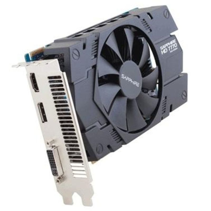 Placa de vídeo com GPU AMD Radeon HD 7770 (1GHz), 1GB de memória GDDR5 (128bits / 4,5GHz), interface PCI Express 16x v3.0, conexões DVI-I + HDMI + DisplayPort, suporta até 6 displays simultaneamente, suporta as tecnologias AMD CrossFireX e Eyefinity 2.0.