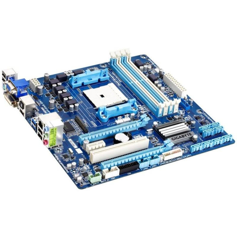 Placa mãe para um processador AMD Athlon e A4 / A6 / A8 / A10 (socket FM2), AMD A85X, Dual Channel DDR3 1.866MHz (32GB), dois slots PCI Express 16x (v2.0 / AMD Dual Graphics / CrossFireX 2-Way), SATA 6Gb/s RAID, áudio de 8 canais, rede Gigabit, USB v2.0, USB v3.0.