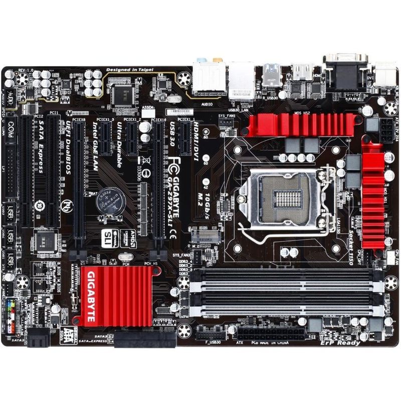 Placa mãe para um processador Intel Celeron, Pentium, Core i3 / i5 / i7 e Xeon (LGA1150), chipset Intel Z97, conexões VGA + DVI-D + HDMI, Dual Channel DDR3 3.000MHz (até 32GB), dois slots PCI Express 16x (v3.0) (AMD CrossFireX 2-way / NVIDIA SLI 2-way), SATA 6Gb/s / SATA Express / M.2 / RAID, áudio de 8 canais (Realtek), rede Gigabit (Intel), modelo ATX.