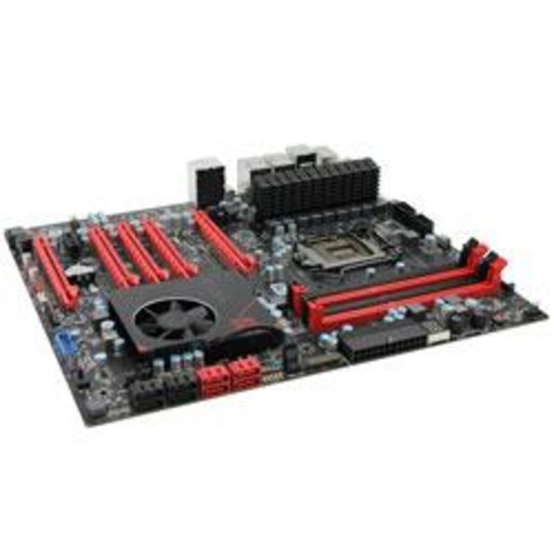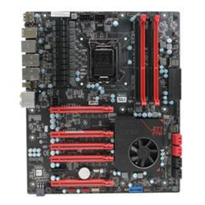 Placa mãe para um processador Intel Core i3/i5/i7 da 3° geração(Ivy Bridge), chipset Intel Z77, Dual Channel DDR3 2.133MHz+ (32GB), cinco slots PCI Express 16x (Dual Graphics / NVIDIA SLI / v3.0), SATA 6Gb/s RAID, áudio de 8 canais, rede Gigabit com 2 portas ETHERNET, USB v2.0, USB v3.0, duas portas e-SATA 3Gb/s.