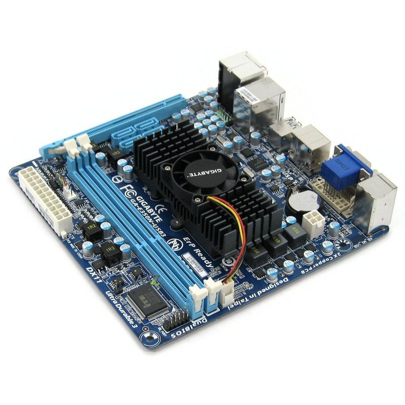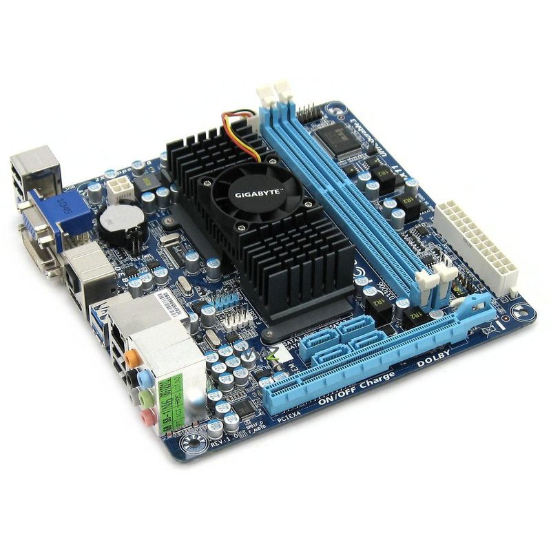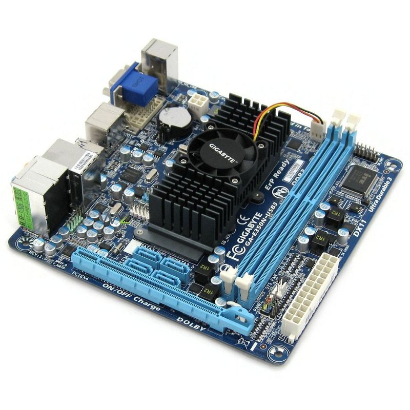 Placa mãe com processador AMD E-350 (Dual Core) integrado, AMD A50, Processador gráfico AMD Radeon HD 6310 (conexões VGA / DVI / HDMI), DDR3 1.333MHz (8GB), SATA 6Gb/s, som onboard 8 canais, rede Gigabit onboard, USB v2.0, USB v3.0, Mini ITX.