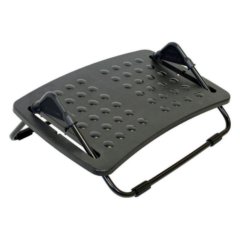 Suporte de apoio p/ os pés, suporta até 15kg, ajuste de nível, ajuste de inclinação, material em plástico ABS, cor preto.