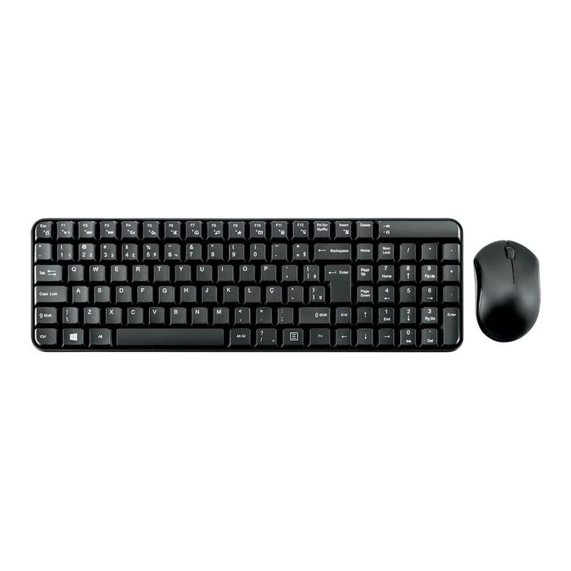 Kit Teclado/mouse wireless 2.4GHz, receptor nnano USB Tipo-A, teclado tipo membrana, teclas multimídia, mouse óptico c/ 3x botões.