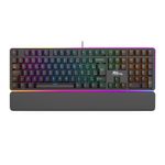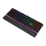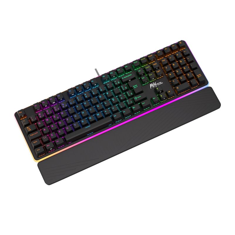 Teclado mecânico 100%, interface USB, switch Red (removíveis), layout ABNT2 (brasileiro) 108 teclas, suporta macros, iluminação LED RGB.