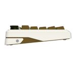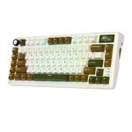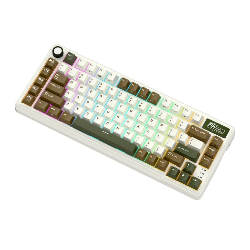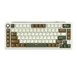 Teclado mecânico 75%, conexão USB Tipo-A + Bluetooth + 2.4GHz, switch Beige (removíveis), layout americano, teclas macro, iluminação LED RGB.