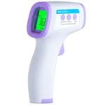 Termômetro infravermelho de mão para aferição de temperatura de seres humanos ou objetos, display com informações.