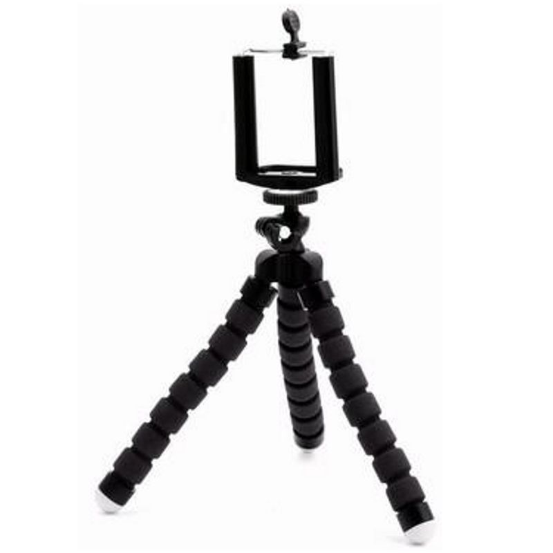 Tripé fotográfico compatível com câmeras e smartphones, modelo portátil e flexível, suporte para celular com abertura máxima de 8cm de comprimento.