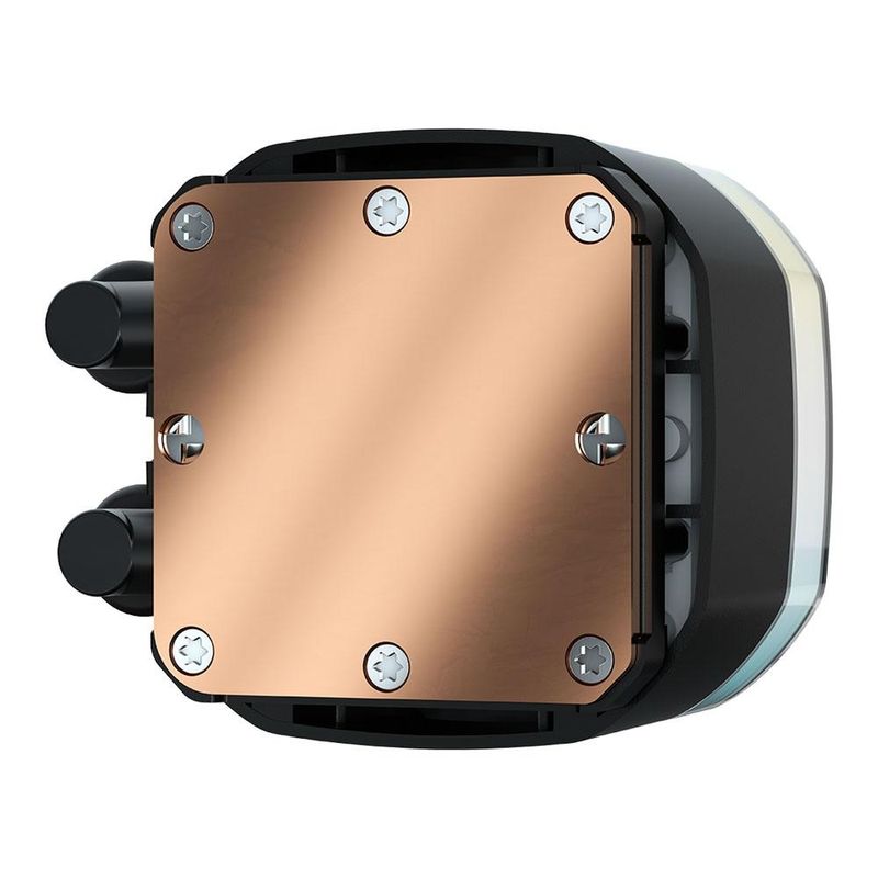 Watercooler fechado com suporte para Intel LGA1150 / LGA1151 / LGA1155 / LGA1156 / LGA1366 / LGA2011 / LGA2011-3 / LGA2066 e AMD AM2 / AM2+ / AM3 / AM3+ / AM4 / AM5, radiador de 12cm, uma ventoinha de 12cm com iluminação ARGB inclusa.
