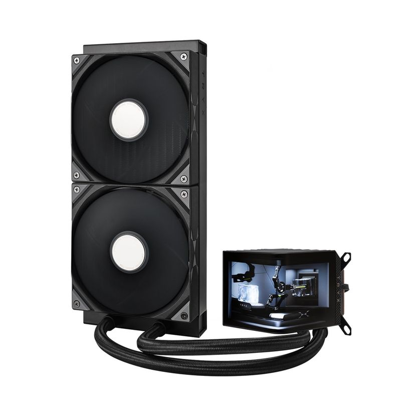 Watercooler, tela 3D AMOLED (2240x1080) 6.5pol, suporta socket Intel/AMD, radiador 280mm, controladora p/ ventoinhas PWM, pasta térmica.